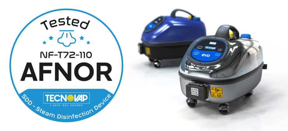 I modelli EVO 304, EVO BLU e EVO SANITIZER sono stati classificati come DDV, ovvero Dispositivo di Disinfezione a Vapore secondo la normativa AFNOR NF T 72-110 e possono sostituire o affiancare i disinfettanti chimici tradizionali, offrendo un’alternativa a basso impatto ambientale.